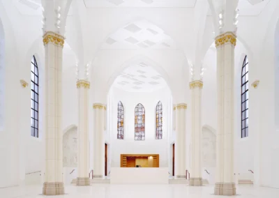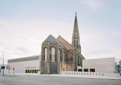 The former St. Mary’s Church (Bochum), a neo-Gothic church built between 1868–1872, has been skilfully converted into the Anneliese Brost Musikforum Ruhr, a major music and performance venue for the Bochumer Symphoniker. The project, designed by Bez+Kock Architekten, sees the church’s nave repurposed as the foyer linking two new concert halls (one ~1,000 seats, the other ~250) while preserving the historic fabric, stained-glass windows and architectural presence. The adaptive reuse has transformed a redundant sacred space into a thriving musical hub.