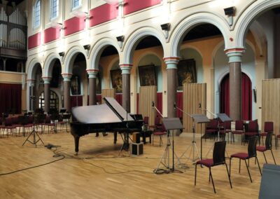 The former St Mary of the Angels Church in West Everton has been transformed into a state-of-the-art rehearsal and recording venue, now known as The Friary. Following a two-year refurbishment funded in part by the European Regional Development Fund, the nave was equipped with acoustic treatment, a raised wooden floor, and sophisticated lighting and sound systems. Today it serves the Royal Liverpool Philharmonic Orchestra, its Youth Orchestra and other ensembles, and is also available for hire with flexible breakout rooms, kitchens and associated amenities.
