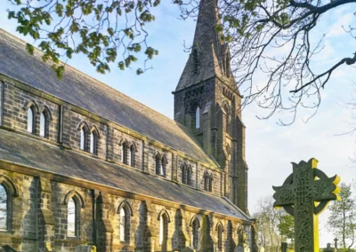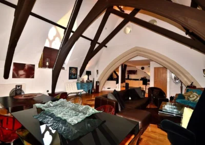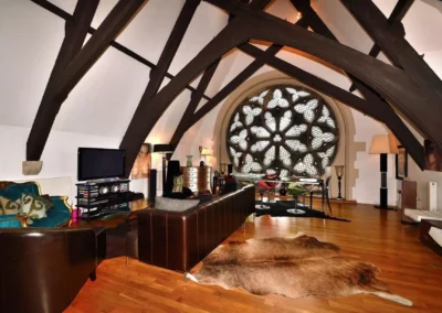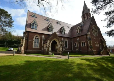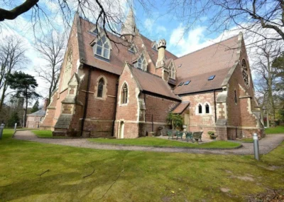 St James’ Church in Edgbaston, Birmingham — a mid-19th-century French Gothic parish church designed by Samuel Sanders Teulon — was sensitively converted in 2004 into twelve unique residential apartments by Astley Towne Developments. The conversion retained the church’s imposing external walls, rose window and vaulted internal space, while creating modern duplex homes within the historic shell; the project earned multiple awards including the 2005 Renaissance Award from the Birmingham Civic Society.
