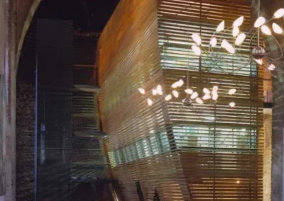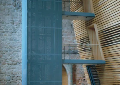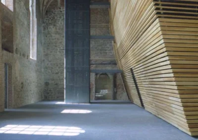 The medieval St Marien Church in Müncheberg was reborn under architect Klaus Block to become both a place of worship and a multifunctional community centre. A new four-storey structure was carefully inserted into the shell of the historic nave, housing the municipal library, offices and meeting spaces while the altar and core liturgical space remain in use. This adaptive reuse preserves the sacred function of the church while giving it renewed civic purpose as a cultural hub